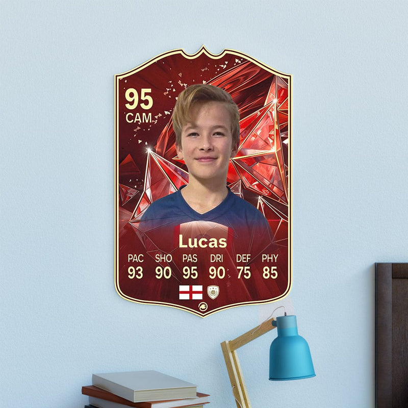 When it comes to personalising your card, the basic steps are to upload a photo and add a name to your card. Then you’ll add details like your player’s position and skill ratings out of 99 for each football skill shown on the card. Our online card builder makes this really easy. And if you aren’t a football card expert, don’t worry!