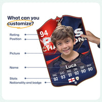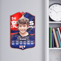 When it comes to personalising your card, the basic steps are to upload a photo and add a name to your card. Then you’ll add details like your player’s position and skill ratings out of 99 for each football skill shown on the card. Our online card builder makes this really easy. And if you aren’t a football card expert, don’t worry!