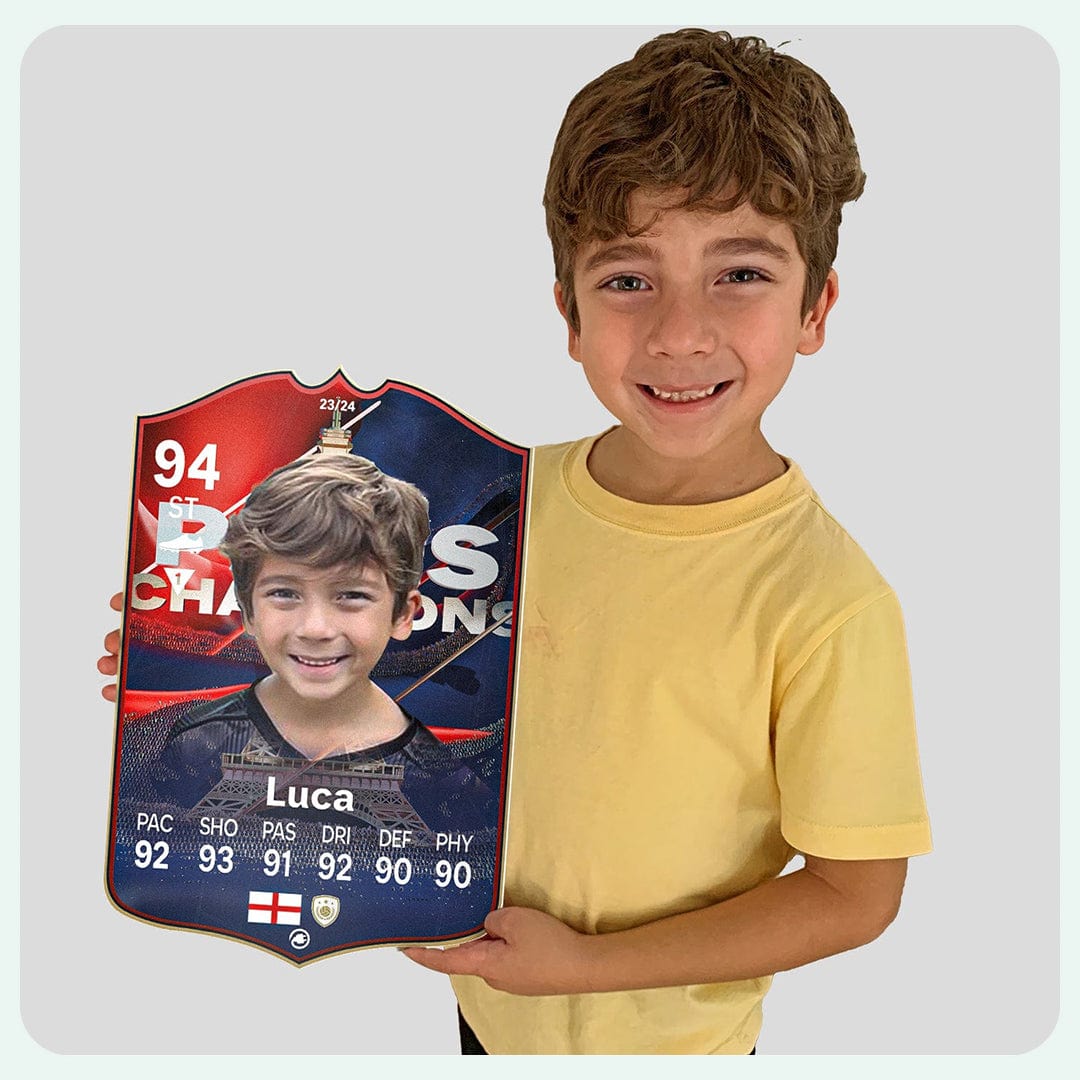Yes! Our football card designers will remove the background from the photo you upload so it looks just like the football cards you might’ve seen games like EA FC 25, EA FC 24 or FIFA. We’ll also position the photo perfectly on the football card so it looks great. If there are any problems with the quality of your photo, we’ll reach out and let you know. Plus, our website's AI will remove the background on the image for visual purposes before purchase so you can see it without a background on the card.
