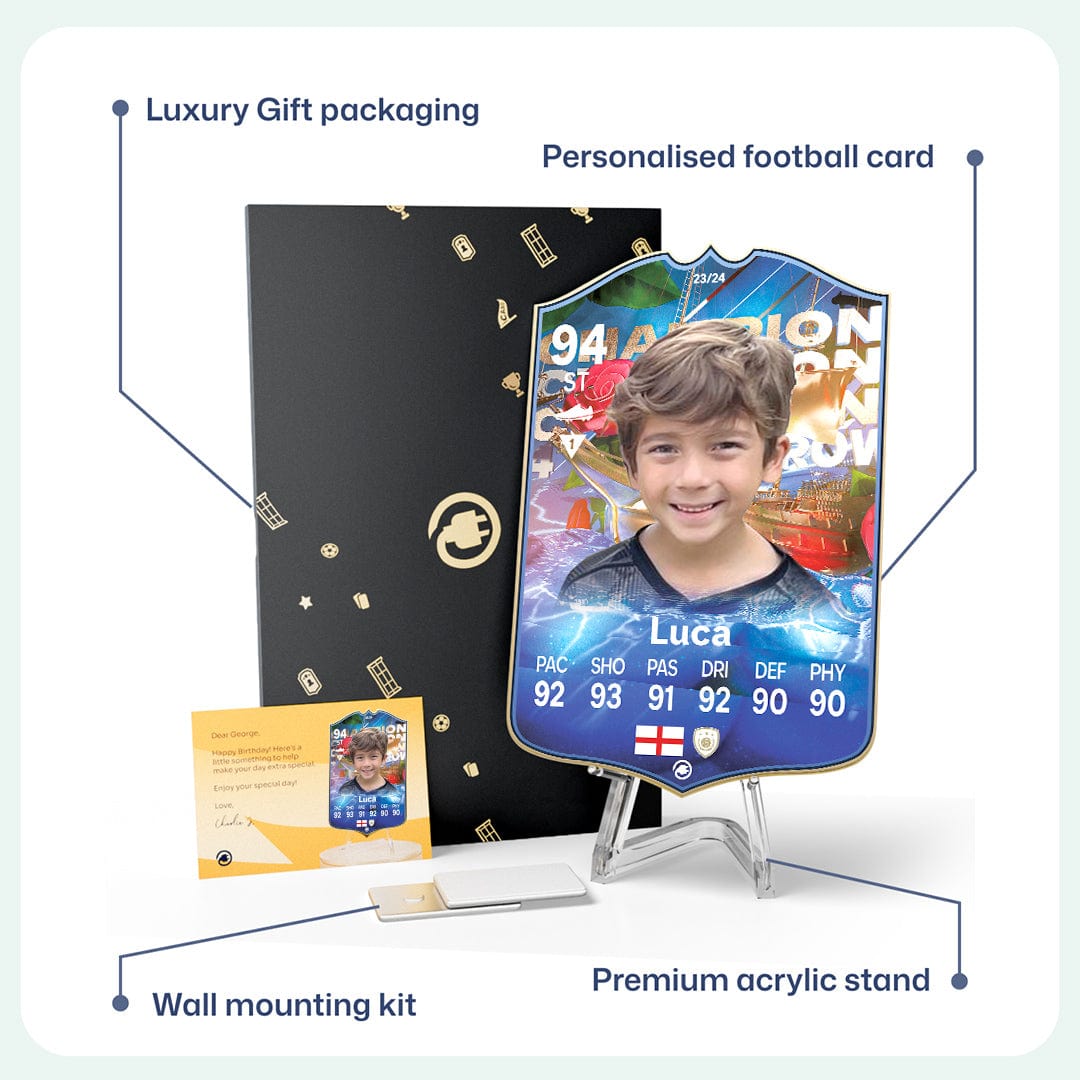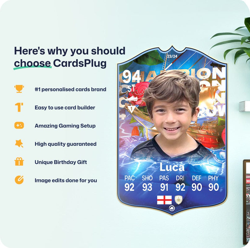 CardsPlug is home to the world’s favourite personalised football cards. Our easy football card builder lets you make a real life football card with your own name, photo, and skill ratings. With 100+ designs to choose from and some inspired by EA SPORTS FC 26 cards seen in EA FC 26, EA FC 25 and FC 24 as well as FIFA cards seen in games like FIFA 23 and FIFA 22.