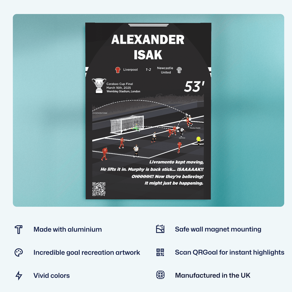 Match moments are the perfect way to forge unforgettable football moments onto a metal poster so they can be with you forever. All match moments include our unique QRGoal feature which lets you rewatch the moment at any time.