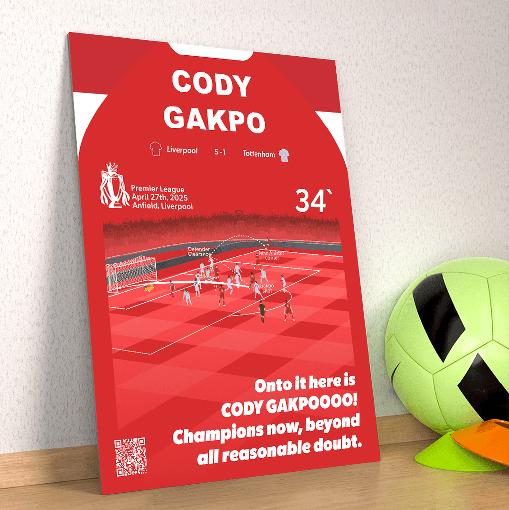 Match moments are the perfect way to forge unforgettable football moments onto a metal poster so they can be with you forever. All match moments include our unique QRGoal feature which lets you rewatch the moment at any time.
