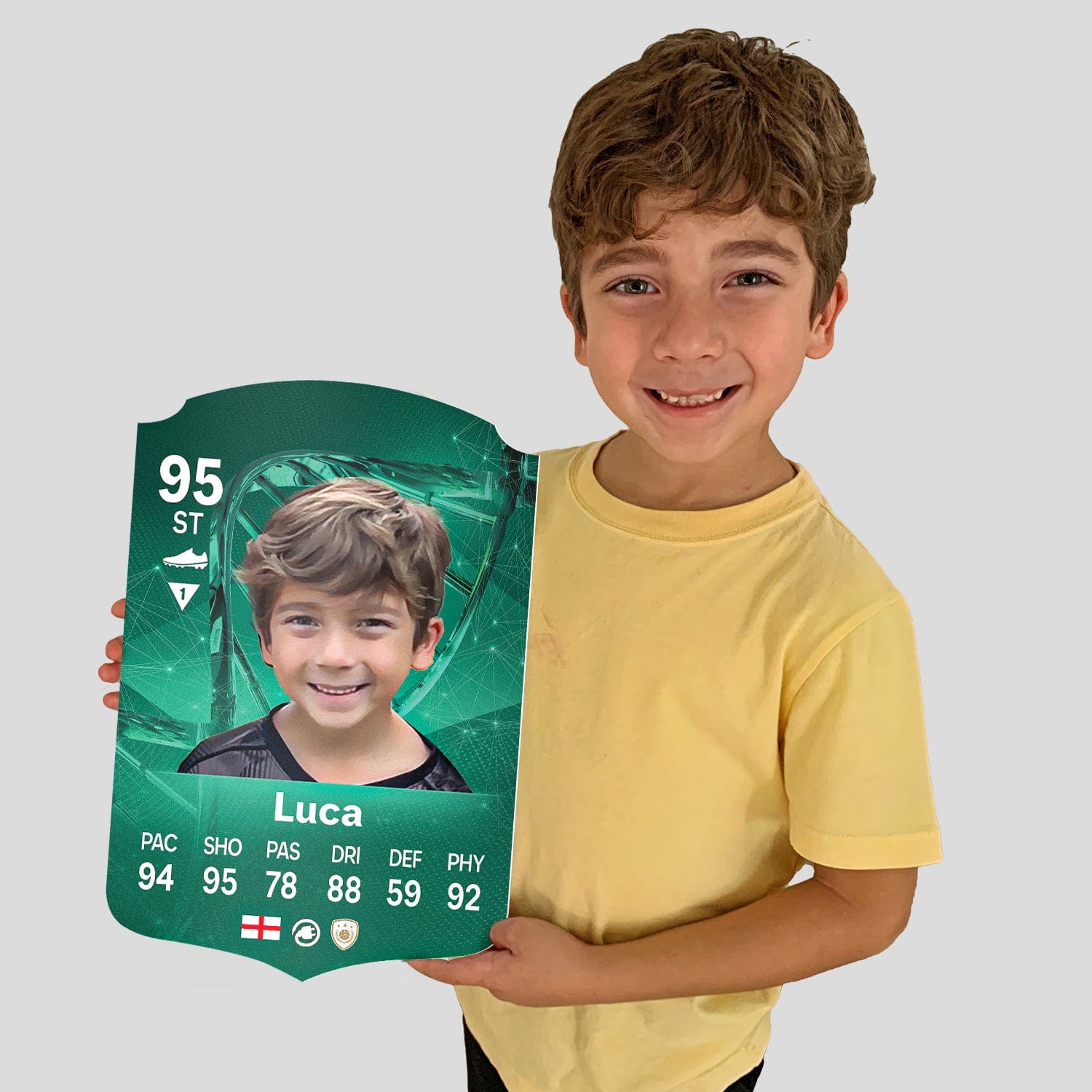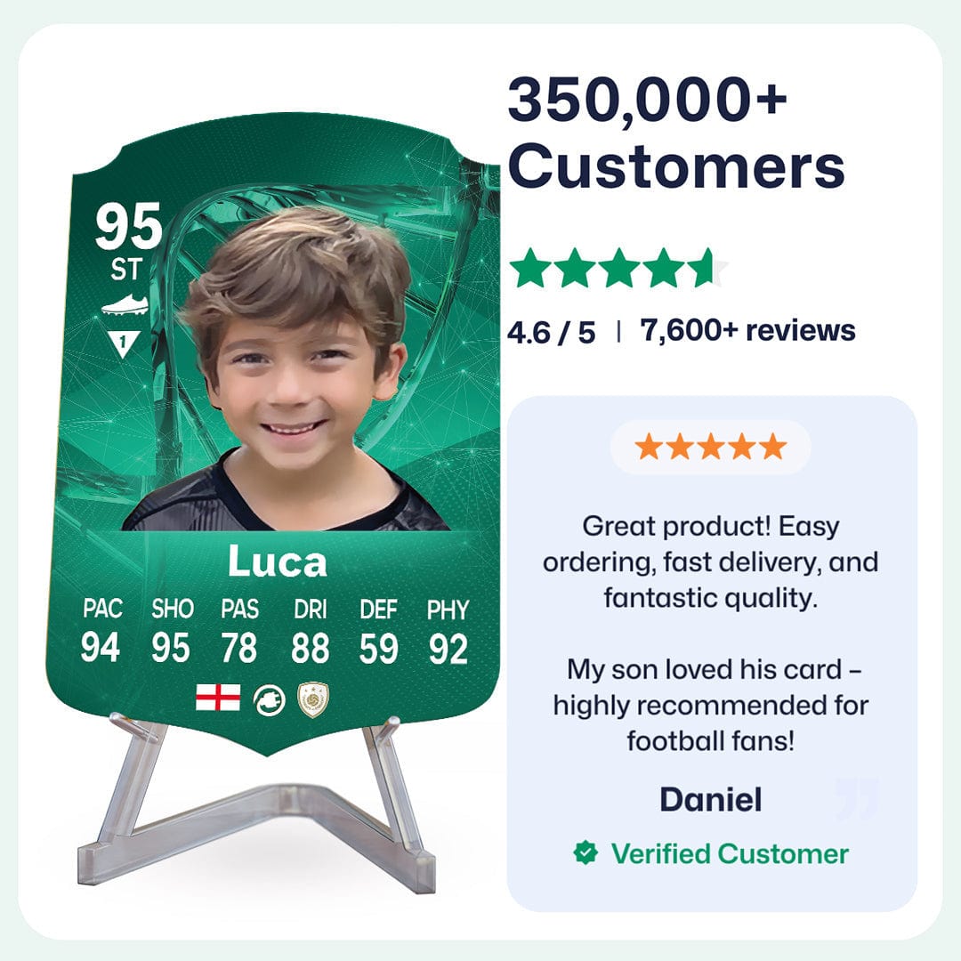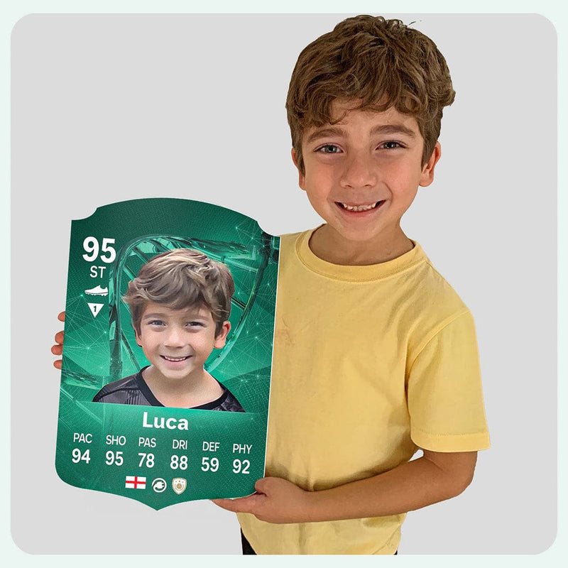 Yes! Our football card designers will remove the background from the photo you upload so it looks just like the football cards you might’ve seen games like EA FC 25, EA FC 24 or FIFA. We’ll also position the photo perfectly on the football card so it looks great. If there are any problems with the quality of your photo, we’ll reach out and let you know. Plus, our website's AI will remove the background on the image for visual purposes before purchase so you can see it without a background on the card.