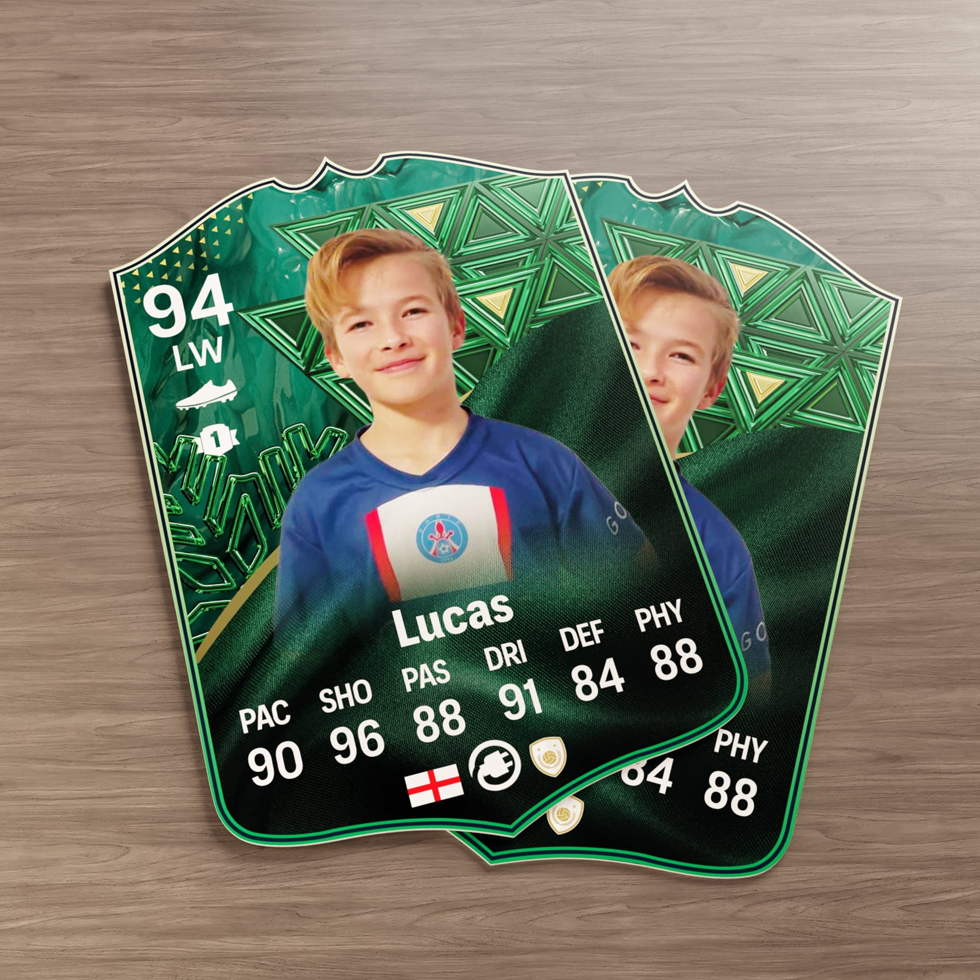 CardsPlug is home to the world’s favourite personalised football cards. Our easy football card builder lets you make a real life football card with your own name, photo, and skill ratings. With 100+ designs to choose from and some inspired by EA SPORTS FC 26 cards seen in EA FC 26, EA FC 25 and FC 24 as well as FIFA cards seen in games like FIFA 23 and FIFA 22.