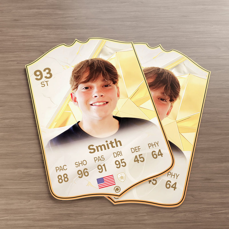 Yes! Our football card designers will remove the background from the photo you upload so it looks just like the football cards you might’ve seen games like EA FC 25, EA FC 24 or FIFA. We’ll also position the photo perfectly on the football card so it looks great. If there are any problems with the quality of your photo, we’ll reach out and let you know. Plus, our website's AI will remove the background on the image for visual purposes before purchase so you can see it without a background on the card.