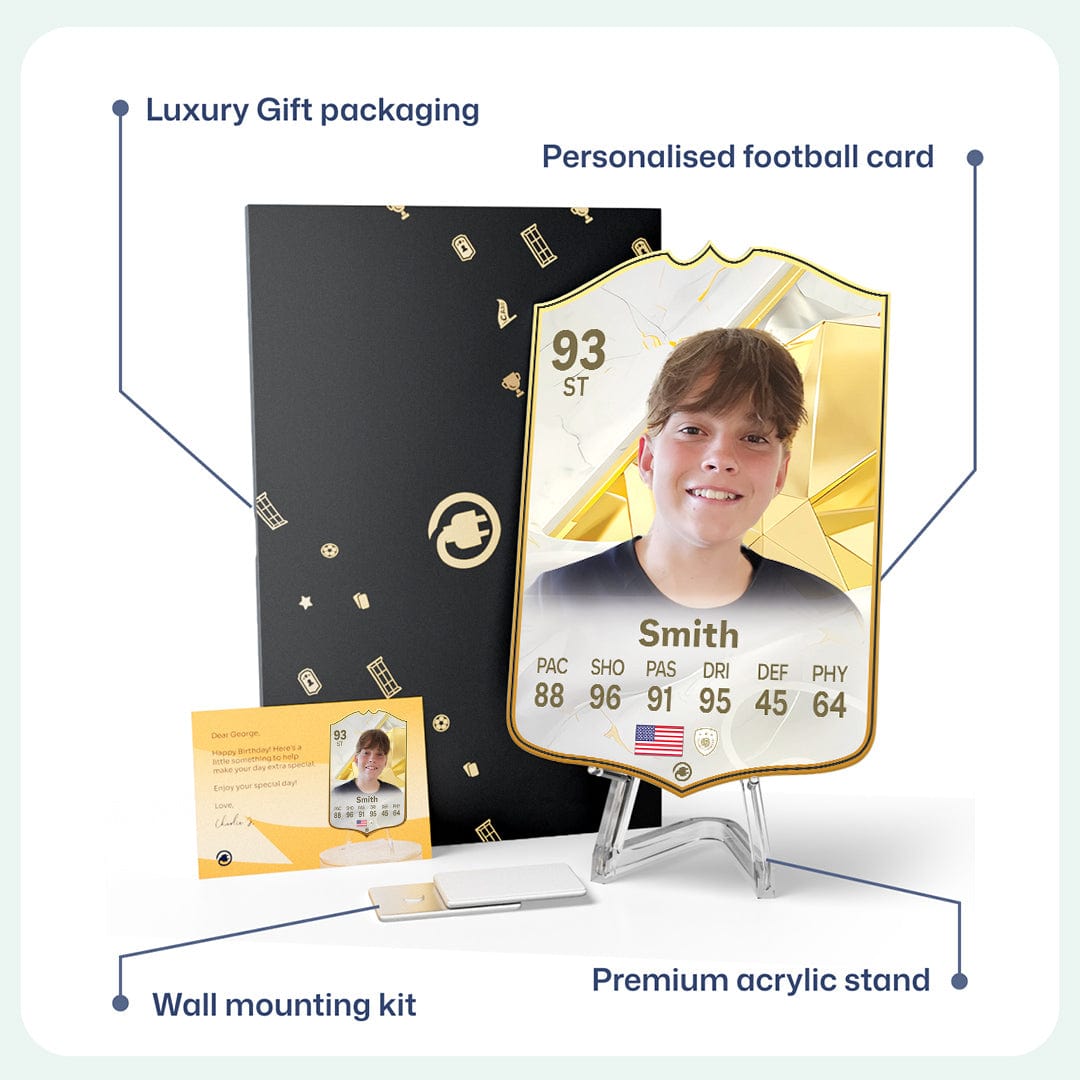 CardsPlug is home to the world’s favourite personalised football cards. Our easy football card builder lets you make a real life football card with your own name, photo, and skill ratings. With 100+ designs to choose from and some inspired by EA SPORTS FC 26 cards seen in EA FC 26, EA FC 25 and FC 24 as well as FIFA cards seen in games like FIFA 23 and FIFA 22.