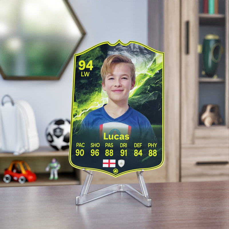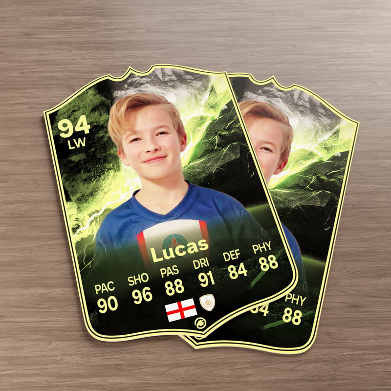 Yes! Our football card designers will remove the background from the photo you upload so it looks just like the football cards you might’ve seen games like EA FC 25, EA FC 24 or FIFA. We’ll also position the photo perfectly on the football card so it looks great. If there are any problems with the quality of your photo, we’ll reach out and let you know. Plus, our website's AI will remove the background on the image for visual purposes before purchase so you can see it without a background on the card.
