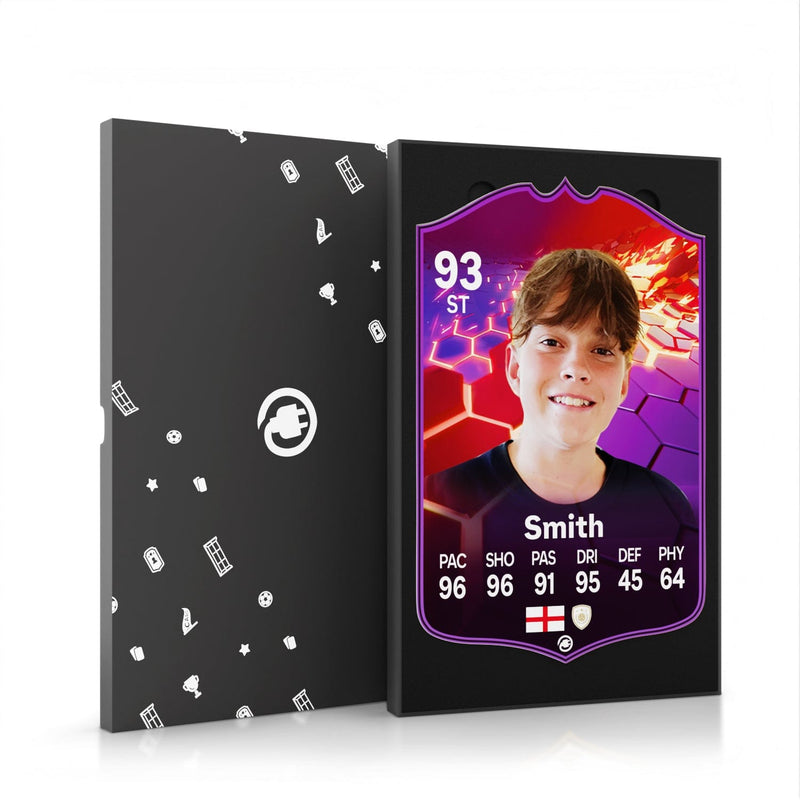 CardsPlug is home to the world’s favourite personalised football cards. Our easy football card builder lets you make a real life football card with your own name, photo, and skill ratings. With 100+ designs to choose from and some inspired by EA SPORTS FC 26 cards seen in EA FC 26, EA FC 25 and FC 24 as well as FIFA cards seen in games like FIFA 23 and FIFA 22.