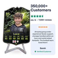 Yes! Our football card designers will remove the background from the photo you upload so it looks just like the football cards you might’ve seen games like EA FC 25, EA FC 24 or FIFA. We’ll also position the photo perfectly on the football card so it looks great. If there are any problems with the quality of your photo, we’ll reach out and let you know. Plus, our website's AI will remove the background on the image for visual purposes before purchase so you can see it without a background on the card.