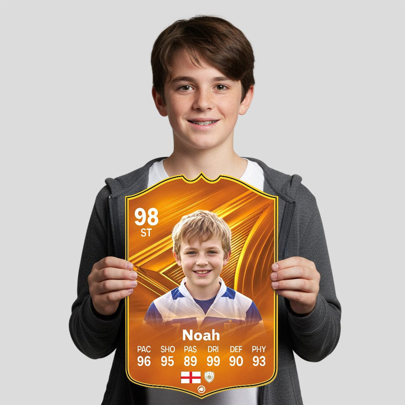 Yes! Our football card designers will remove the background from the photo you upload so it looks just like the football cards you might’ve seen games like EA FC 25, EA FC 24 or FIFA. We’ll also position the photo perfectly on the football card so it looks great. If there are any problems with the quality of your photo, we’ll reach out and let you know. Plus, our website's AI will remove the background on the image for visual purposes before purchase so you can see it without a background on the card.