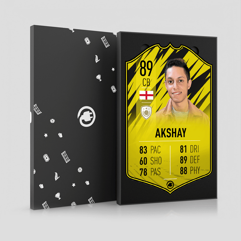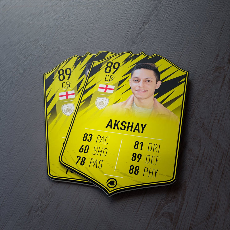 CardsPlug is home to the world’s favourite personalised football cards. Our easy football card builder lets you make a real life football card with your own name, photo, and skill ratings. With 100+ designs to choose from and some inspired by EA SPORTS FC 26 cards seen in EA FC 26, EA FC 25 and FC 24 as well as FIFA cards seen in games like FIFA 23 and FIFA 22.