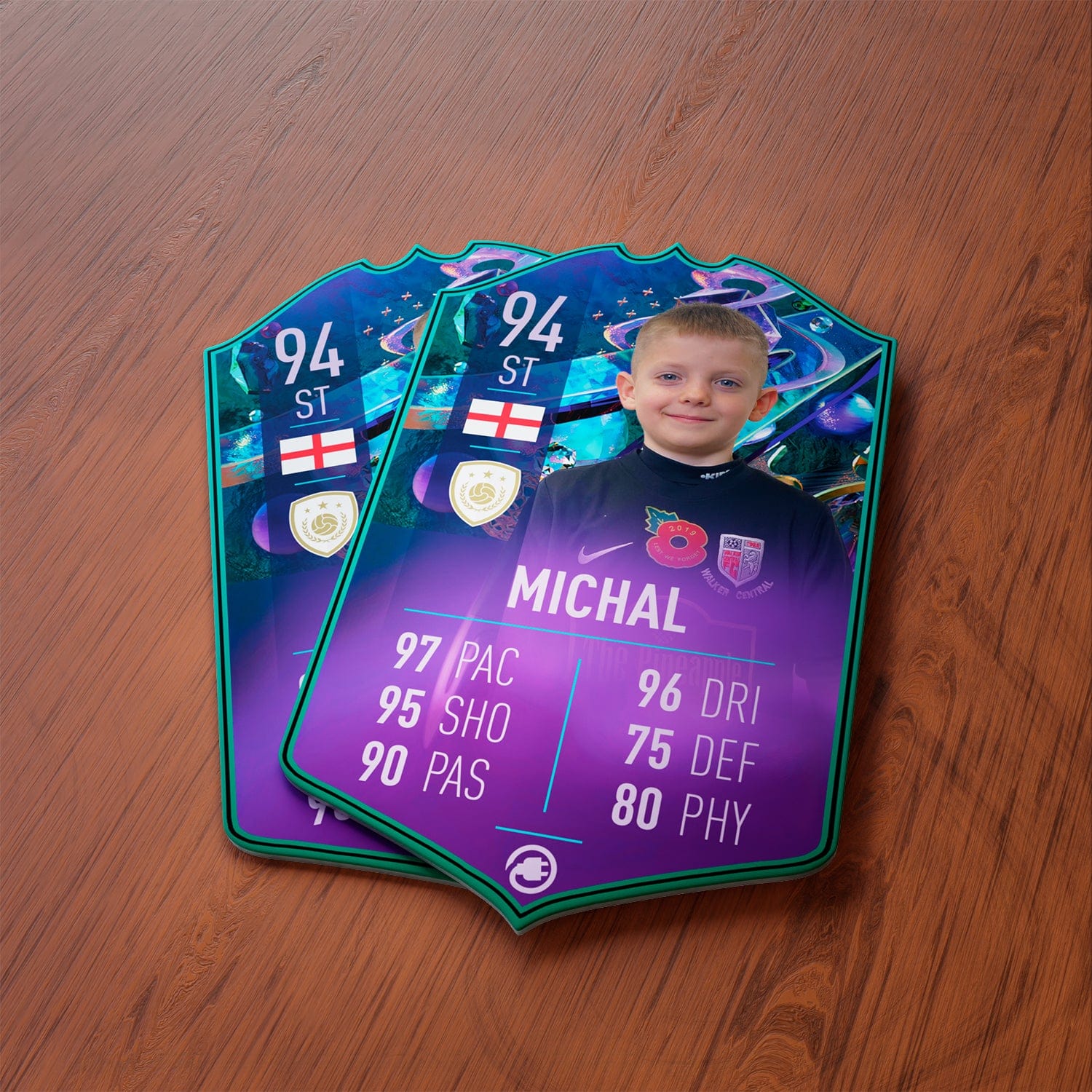 CardsPlug is home to the world’s favourite personalised football cards. Our easy football card builder lets you make a real life football card with your own name, photo, and skill ratings. With 100+ designs to choose from and some inspired by EA SPORTS FC 26 cards seen in EA FC 26, EA FC 25 and FC 24 as well as FIFA cards seen in games like FIFA 23 and FIFA 22.