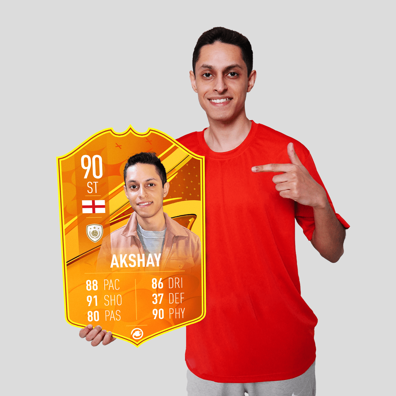 CardsPlug is home to the world’s favourite personalised football cards. Our easy football card builder lets you make a real life football card with your own name, photo, and skill ratings. With 100+ designs to choose from and some inspired by EA SPORTS FC 26 cards seen in EA FC 26, EA FC 25 and FC 24 as well as FIFA cards seen in games like FIFA 23 and FIFA 22.