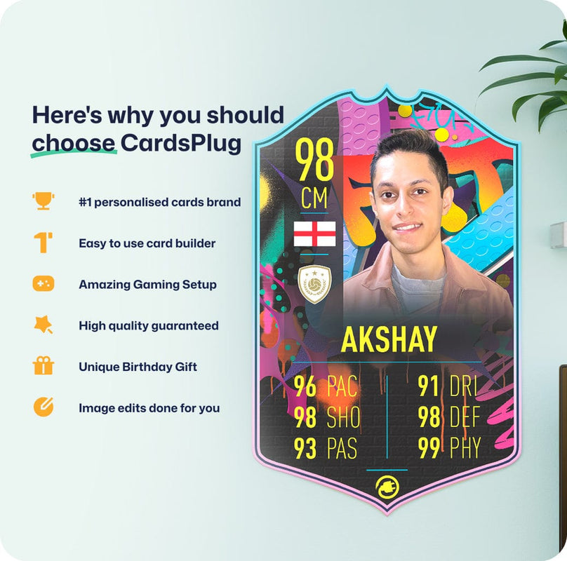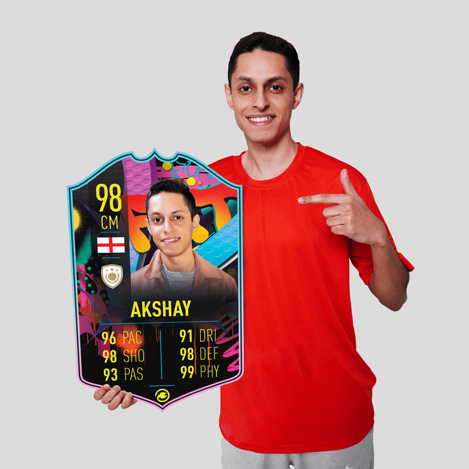 CardsPlug is home to the world’s favourite personalised football cards. Our easy football card builder lets you make a real life football card with your own name, photo, and skill ratings. With 100+ designs to choose from and some inspired by EA SPORTS FC 26 cards seen in EA FC 26, EA FC 25 and FC 24 as well as FIFA cards seen in games like FIFA 23 and FIFA 22.