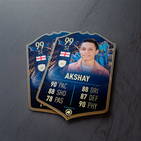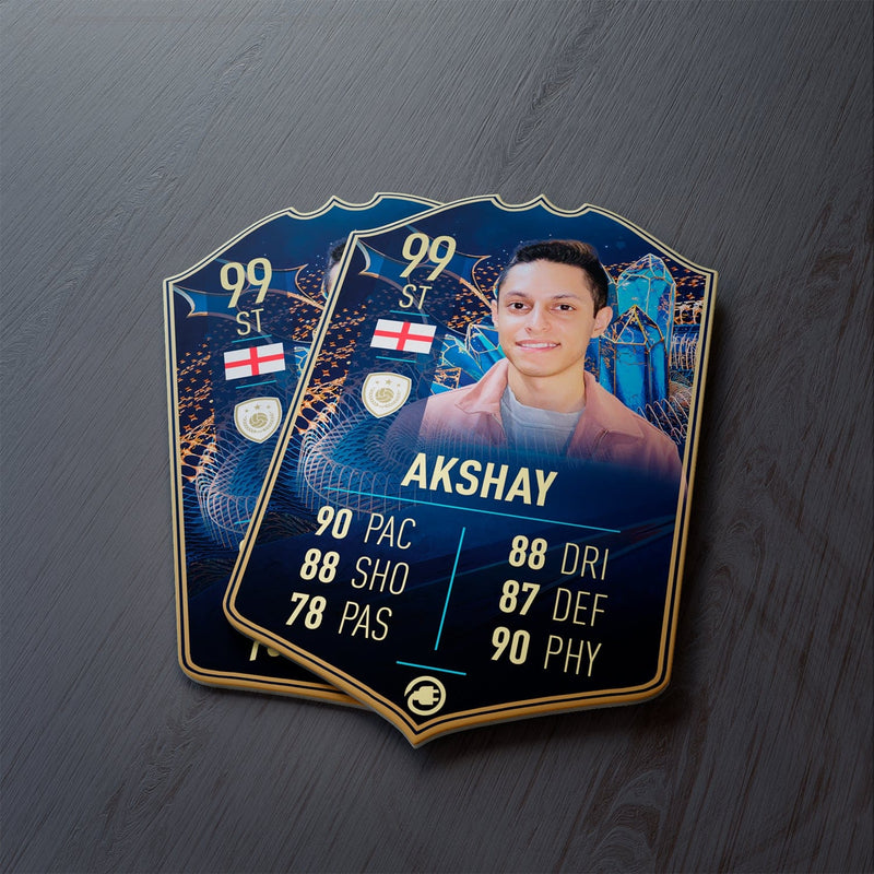 CardsPlug is home to the world’s favourite personalised football cards. Our easy football card builder lets you make a real life football card with your own name, photo, and skill ratings. With 100+ designs to choose from and some inspired by EA SPORTS FC 26 cards seen in EA FC 26, EA FC 25 and FC 24 as well as FIFA cards seen in games like FIFA 23 and FIFA 22.